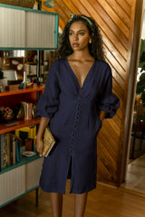 Please note that new versions of this style have two extra buttons at the top for flattering but slightly less deep V neckline