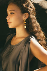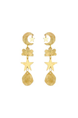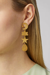 A shower of celestial shapes in hand-hammered brass. Sterling silver posts. Nickel and lead free.