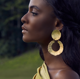 A bold twist on a vintage classic, warm brass glitters in this unbelievably light and brilliantly textured hand-hammered pair. Sterling silver posts. Nickel and lead free.